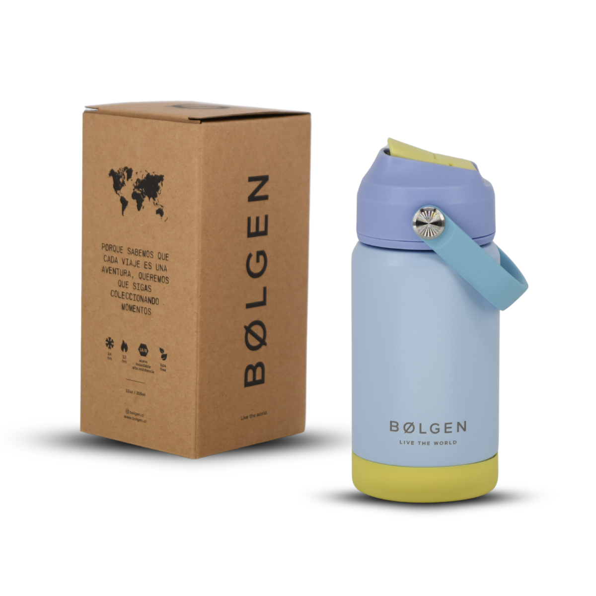 La botella térmica KIDS 355 ml de BØLG CONCEPT está especialmente diseñada para nuestros pequeños aventureros. Con el tamaño perfecto, bombilla removible y base antideslizante, la hacen la botella perfecta para su día a día o todas las aventuras que se propongan.