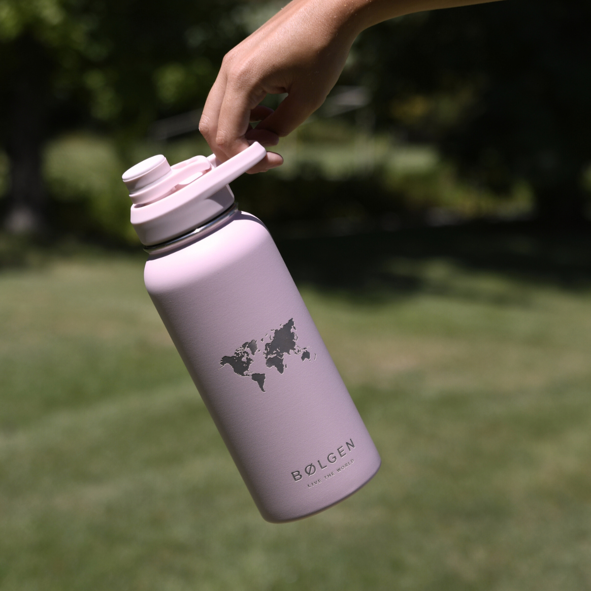 Puedes encontrar la botella en su diseño minimalista original o en su edición limitada que incluye un Mapa del Mundo que refleja nuestra pasión por los viajes y aventuras.